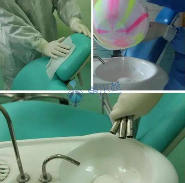 3、每日診療結束后對牙椅綜合治療臺進行終末消毒,并把牙椅升高排空干燥過夜,避免病菌微生物沉積形成生物膜。